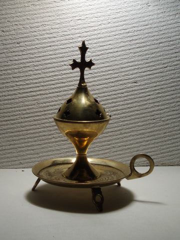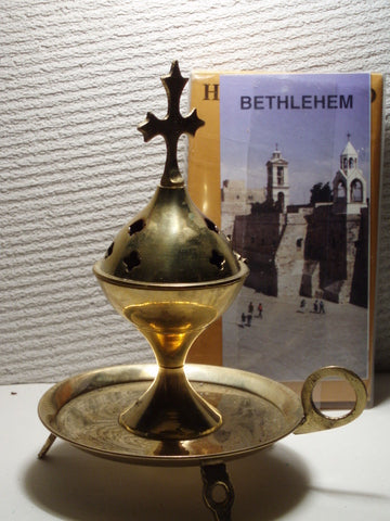 Weihrauchständer aus Inoxstahl (messingbeschichtet) zum Räuchern (3-teilig)Souvenir orig.13 cm hochSmokerack stainless for incense 0,3 feet high